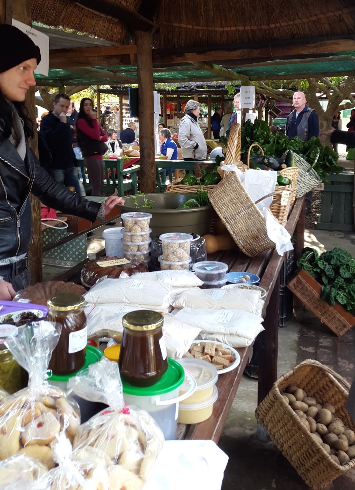 the earth’ people who very proudly grow their own organic food and make their own crafts. Even after our hearty breakfast at The Posthouse we still managed to find space for deliciously hot pancakes together with very strong brewed coffee. We must have sampled goodies at every stall of fresh local produce, chatted up a storm with all the genial local folk at the same time as filling our arms up with 100% organic food and delightful village-made crafts, including jars of olives, pickles, delicious smelling loaves and all types of cheeses and salami. I was so caught up in the moment; I nearly bought each of my boys a thick chunky homemade jersey from the dear sweet lady knitting furiously in a quiet corner. We were laden down as we headed back to our “Tale of Squirrel Nutkin” room at The Posthouse to relax on our verandah overlooking the gardens and enjoy our wares for a late lazy lunch.